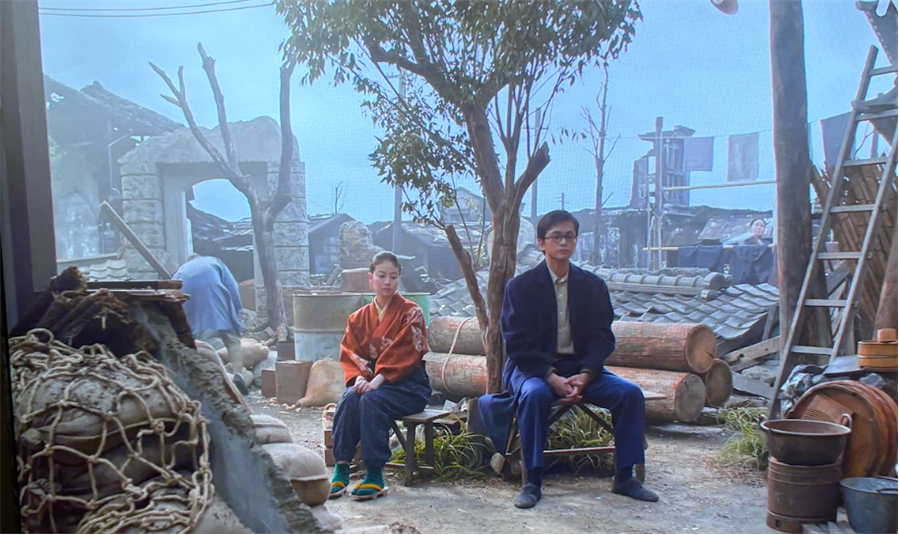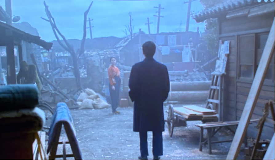 空襲の焼け野原で一人佇むのぶの前に嵩が現れるシーン。