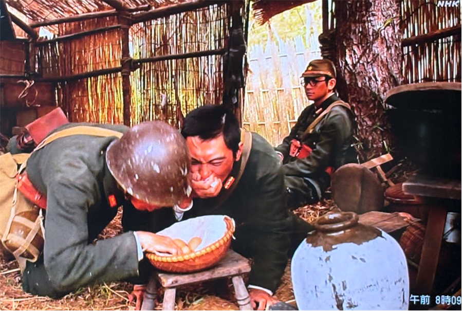 中国人老婆が兵士たちに与えたゆで卵を殻ごと食べるシーンは、あんぱん第58話のハイライトでした。