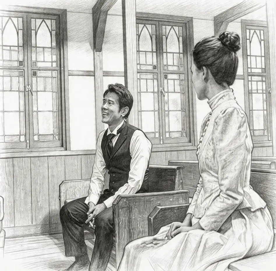 「この間は、知らない人のふりをしてくれてありがとう」と言う直美に、吉江牧師は——「本当に知らない人に見えたんで」と返す。